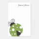 This is Personalized Ladybug notepad. This post it notes featuring is a white background with large red and black ladybug peeking in from the bottom left side. You can customize with a name or message. It is fun office supplies for work or home.
