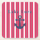 Personalized Lake or Beach Red White Striped Square Paper Coaster