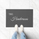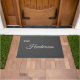 This personalized door mat is accented with your last name on a textured looking gray background, making it an elegant accessory for your home.