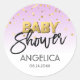 Add these cute and modern personalized baby shower stickers / labels to your invitations and gift favours. Modern boy or girl baby pastel lilac purple lavender with faux gold foil. Customize them by adding mommy-to-be's name and date.