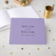 Elegant classic serif typography on a lavender background. Cherish the comments and sentiments from friends and family, preserved in your beautifully crafted wedding guest book. Simple elegance.