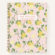 Personalized spiral notebook with light pink background and lemon pattern. Great gift for teachers or citrus lovers.