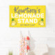 Bright lemonade stand banner featuring cute yellow background, vector drawn lemons, and an editable text template for you to customize.