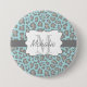 Leopard print design personalized button in blue and grey with a grey stripe, white edged with grey banner that you can customize with a monogram initial and name!