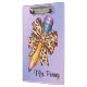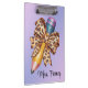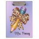 Stay organized in style with this personalized clipboard, featuring a trendy pencil design adorned with a chic leopard print coquette bow on a purplish pink background. Perfect for teachers, students, or anyone who loves stylish stationery, this custom clipboard adds a touch of personality to your classroom or office. The sturdy construction and smooth writing surface make it practical for everyday use, whether you're grading papers, taking notes, or managing tasks. Personalize it with your name or a special message to create a unique and functional accessory. Ideal as a back-to-school gift or a thoughtful present for any educator, this clipboard is both fashionable and functional, making it a must-have for any workspace.