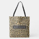 Make a fierce fashion statement with this stylish personalized tote bag. Featuring a bold and trendy leopard print in classic black and gold hues, this bag is perfect for everyday errands, shopping trips, or a day out with friends. Add a touch of personal flair by customizing it with your name or initials.