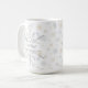 Enjoy the snow with this winter coffee mug decorated with gold and silver snowflakes. Personalize with a name on one side and the other side has the words "Let it Snow"