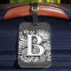 Designed to add a touch of elegance to your journey, this luggage tag features a bold "B" adorned with exquisite pen and ink tattoo line art in black and white. The front of the tag showcases delicate flowers and faux glitter that frame the initial, turning your travel essentials into a personalized statement piece.