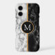 Personalized Letter Black White Marble iPhone Case