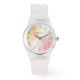 Personalized modern stylish light pink rose gold and white gradient wristwatch design with the owner's first and last name.