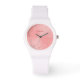 Personalized modern stylish elegant rose gold pink gradient wristwatch design with the owner's first and last name.