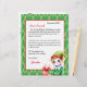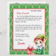 Add your child's name to this personalized letter from Santa. Cute elf holding a gift and candy cane background. On the back is a colouring page of Santa Claus holding a plate of cookies with a snowflakes background.