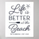Decorate your seaside abode with this rustic frameable print featuring the phrase "life is better at the beach" in deep navy blue lettering accented with a starfish and an oar. Personalize with your family name and/or year established beneath.