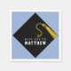 Creative graduation party napkins featuring black graduation cap and gold tassel design on a light-blue background. Edit text to add senior grad's name.