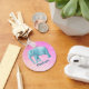 A picture of a hand painted light blue elephant done in watercolors. This image has the classic watercolor paint blossoms where the paint spreads out in random patterns, a feature which makes watercolors so unique. The background is also a light pink gradient watercolor design which creates a nice contrast. Personalize with a name.