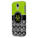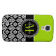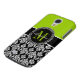Girly, lime green background, black and white floral damask pattern with a decorative circle label where you can add your name and monogram initial in gorgeous script fonts. Design by Elke Clarke©2012 for MONOGRAMGALLERY