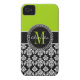 Personalized Lime Green Black Damask Case