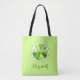 This modern lime green tote bag features a green fractal art in a round white frame. Personalize it with a name in matching green calligraphy at the bottom. Great gift for a girlfriend or family member who likes fractals and/or math.