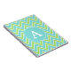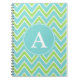 A lime and turquoise chevron pattern decorates this stylish notebook. Personalize this monogrammed notebook by changing the monogram letter. This notebook is great for school, travel, business, etc...The design is from original art.