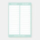 Personalized list sticky note pad featuring a teal colour, a 'to do' list and a 'to buy' list and a family, business or individual's name at the bottom.