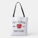 Trendy modern teacher tote. One side has apple-arrow design with words Live Love Teach. The other side is personalized with the same apple, but has teacher’s name, and grade, school, or quote. Great size.