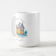 Pretty Christmas coffee mug with a pretty watercolor log cabin and pine trees.