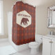 Create the perfect shower curtain for your log cabin or camp. It features your custom text and a bear illustration in a faux woodgrain style frame against a retro style plaid background.This simple geometric plaid pattern in shades of rust red and orange was inspired by a vintage flannel shirt and has rustic, country sort of feel.