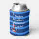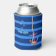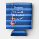 A nautical theme can cooler that can easily be personalized for weddings, engagements, anniversaries or any event that calls for remembering. The coral anchor and blue stripes are part of the design but the background colour, text colour and style can be customized to coordinate with an individual colour scheme. Easy to personalize for any event. Design by Night Owl's Menagerie, 2015.