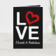 Show your loved ones how much you care, or just express your love for eachother on Valentine's day with this cool, modern contemporary stylish love paper greeting card. Features solid black background with block font letters, LOVE, where the O is a sketched or painted red heart. Customize it with your own personalized couple names! All Designs Copyright © 2013 www.CuteComfy.