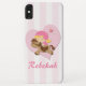 A cute design for the young girl (or young at heart woman) who loves horse riding. A cute girl riding a horse on a pink love heart with light pink and white stripes in the background. Customize with a name or your own text to create your own special and unique case.