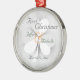 This First Christmas holiday ornament features a white lucky clover on a grungy grey background. The text is grey, names are dark green and & is orange. It's perfect for your first Christmas together dating or married. It can be personalized with names and a date. ~~