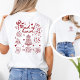 The back of the shirt displays the "Maid of Honor" design in a trendy coquette aesthetic, featuring a red bow, hearts, and stars alongside fun celebratory icons like wedding cake and rings. This personalized Maid of Honor t-shirt is fully customizable, allowing you to add a name, destination, and year to the back. It’s the perfect attire for a destination bachelorette trip or bridal shower, ensuring the bride's best friend feels special and stays perfectly in theme with the rest of the squad.