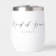 This chic, simple maid of honour wine tumbler features your personalized name underneath elegant black typography. Customize these elegant, modern bridal party gifts for your wedding or bachelorette party.