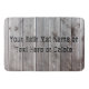 Personalized Man Cave Bathroom Rustic Bath Mat for men and women who love cabin home decor. Type in Your NAME or TEXT or Delete it. Cool wood look rustic bath mat comes in 3 sizes. Large grey bath mat with black text is shown or choose the medium or small size. We have matching and coordinating faux barn board rustic man cave bathroom accessories or we can design them for you, at no extra charge.