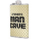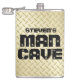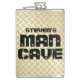 This flask has an awesome background pattern printed on it that looks like gold diamond plate metal. And you can personalize it! Add your own name and you'll have a custom flask that reads "(Your name's) Man Cave". A perfect addition to any man cave's bar!