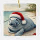 Personalized Manatee with Santa Hat Ceramic Ornament