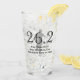 Add your name, event and time or other text to this personalized long distance runner keepsake drinking glass or beer glass, great for the mens athlete or womens fitness runner. Features grey shadow silhouette of a runner with 26.2, running race distance. Black and white with your custom text. Great gift to commemorate completion of a sports marathon for a running fanatic or cross-country jogging sports fan.