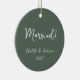 Celebrate your first Christmas as a married couple with this personalized boho green ceramic ornament. Featuring a charming handwritten script, this ornament beautifully displays the names of the bride and groom, along with the year. The earthy green tone adds a touch of natural elegance, making it a perfect keepsake for this special milestone. Personalize it with your names and the year to create a unique ornament that captures the love and joy of your first holiday season as husband and wife.