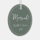 Celebrate your first Christmas as a married couple with this personalized boho green glass ornament. Featuring a charming handwritten script, this ornament beautifully displays the names of the bride and groom, along with the year. The earthy green tone adds a touch of natural elegance, making it a perfect keepsake for this special milestone. Personalize it with your names and the year to create a unique ornament that captures the love and joy of your first holiday season as husband and wife.