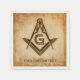 Searching for personalized masonic party decorations and ideas? Here is a personalized masonic napkin template that you can jazz up your guest tables with! This unique old rustic parchment design features the square and compass emblem of freemasonry in a dark, rich brown. Simply drop in your own text! Category: freemason party decorations for tables; custom masonic napkin templates. Colours: dark brown, sand, and tan.