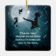 This Irish Dance Christmas tree ornament features a silhouette girl dancing soft shoe with a fairy, dragonflies, full moon and a sky filled with stars. On the front is the inspirational quote - "May you touch dragonflies and stars, dance with fairies and talk to the moon...". The back can be personalized with a name, year or any text that you wish to add.
