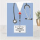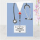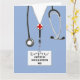 Creative medical school graduation card featuring hospital scrubs. To personalize edit text to add physician's name.