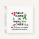 Personalized Mental Health SELF CARE Christian Notebook with CUSTOMIZABLE text for men and women who want to promote self-care and raise awareness of mental health while building their businesses. The wording reads 'SELF CARE IS WEALTH CARE' with the customizable 'WISE KINGDOM ENTREPRENEUR' underneath, where you can add your name or other text. The text is surrounded by heart clusters and the green ribbons that represent mental health awareness. This mental health notebook would make a great gift for Christian workaholics.