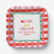 Add some holiday magic to your table with these festive "Merry and Bright" personalized Christmas paper plates! With a bold red and pink chequered background and space to customize your family name, these disposable plates bring cheer to every bite.