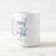 Celebrate the holiday season with this cheerful holiday coffee mug featuring a simple illustration of a green holly leaf with red berries, elegant blue script typography that reads, “Merry and Bright,” and space to add customizable text or a name. This charming mug will make a great Christmas gift for anyone on your list.