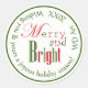 The Christmas stickers feature decorative calligraphy of "Merry and Bright" in festive red and green, with a customizable typography field encircling it that currently says "Wishing you & yours a joyous holiday season!" for adding wishes, names, years, or other personal touches in green. They are perfect for Christmas card mailings, DIY decoration projects, scrapbooking, sharing cookies with family, friends, and neighbours, party favours, gift labelling, and adding a dazzling touch. These stickers are ideal for spreading holiday cheer, joy, and Christmas spirit.