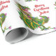 Personalized Merry Christmas Dinosaur Santa Hat Wrapping Paper