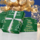 Lovely Personalized Merry Christmas Holiday tree in faux gold colour with star on green background. Add your family name. Perfect for those gifts!