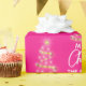 Lovely Personalized Merry Christmas Holiday tree in faux gold colour with star on pink background. Add your family name. Perfect for those gifts!