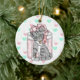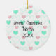 Personalized Merry Christmas Grey Kitten Pink Bow Ceramic Ornament